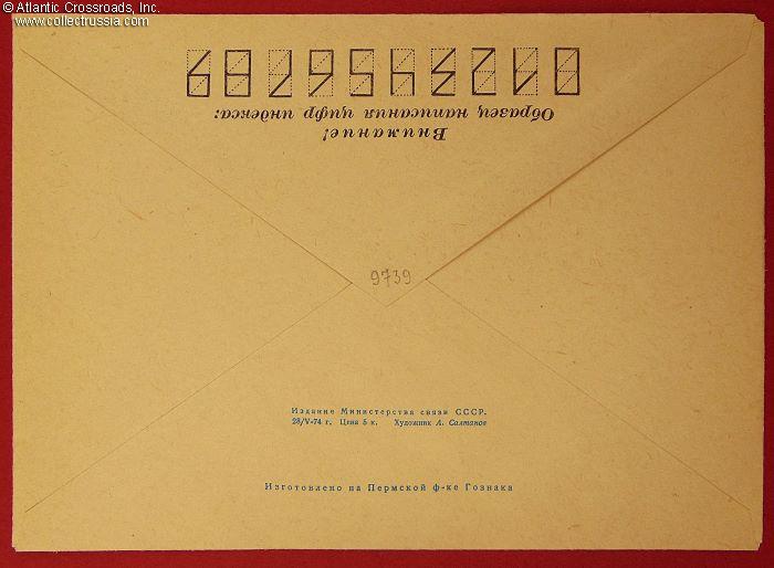 The size is 6 ½" x 4 ½", postally unused, published by the Ministry of Communications of the USSR, circulation unknown. The artist's name, A. Saltanov, is printed on the lower flap of the verso. The artwork is captioned in Russian and Estonian. The pre-printed government postal stamp with the emblems of the USSR and its Communist Party is one of the most commonly used designs of that period, symbolizing the union of the state and party rule.