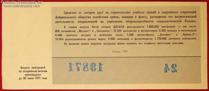 Lottery ticket issued by DOSAAF (Voluntary Society for Assistance to the Army, Air Force, and Navy) of the USSR, July 1970 drawing.