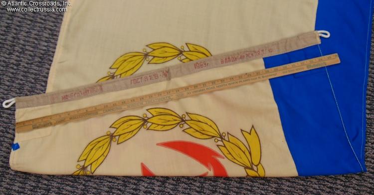 Excellent condition. Unlike the vast majority of Soviet naval flags made of wool bunting, the flag shows no mothing whatsoever. It is completely clean, and its colors are strong. A truly superb example through-and-through!