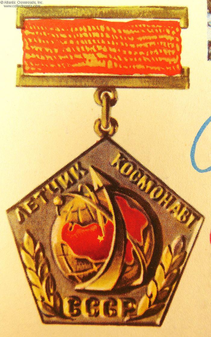 Government Postcard Happy October, with the Cosmonaut of the USSR badge, inscribed, 1966.