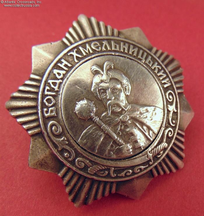Order of Bogdan Khmelnitsky, 3rd class, Type 1, #3060, awarded on 15 December 1944 to Senior Lieutenant Yeremey Bezyazychnyi (Еремей Герасимович Безъязычный), rifle company commander, 408th Rifle Regiment, 1st Rifle Division, 70th Army, 2nd Belorussian Front.