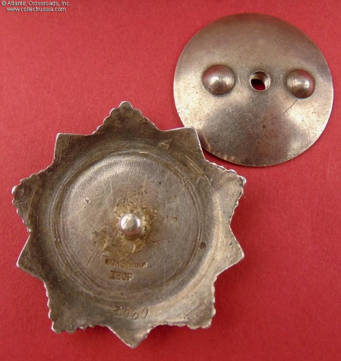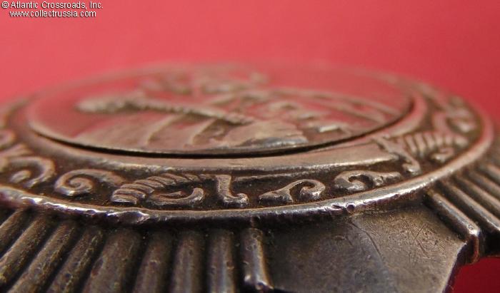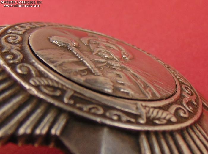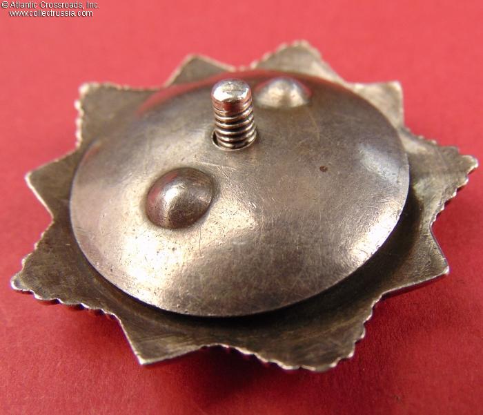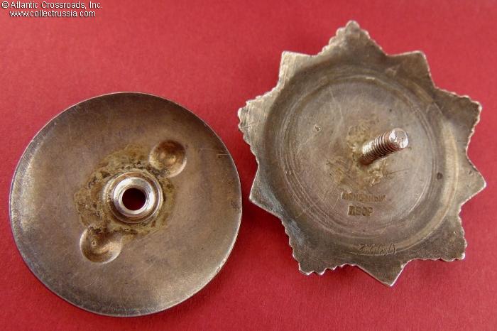 There is a very attractive even patina to silver on both sides. The screw post is full length of approx. 12 mm and comes with an original period screw plate in silver. Overall, a very attractive example, especially considering that this decoration was often issued to lower ranks than the other Soviet "commander's orders" (its third class was the only one among them that could be bestowed even upon a private!)
