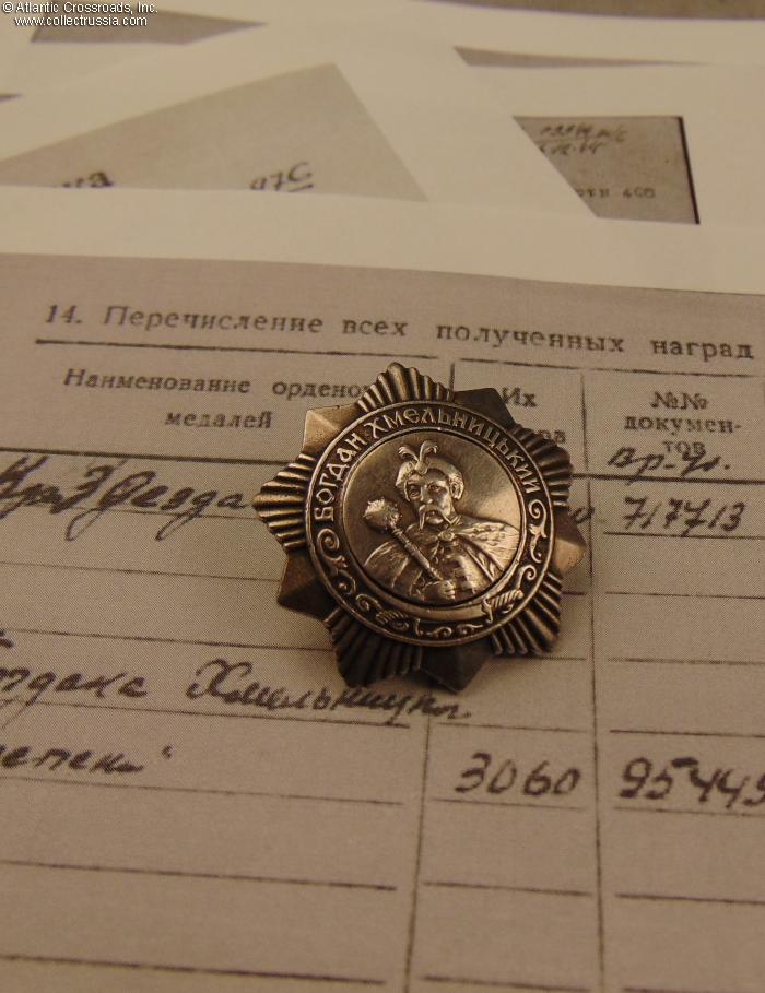 Research Materials: photocopy of the award record card and award commendations for the Order of Bogdan Khmelnitsky, 3rd cl. and the