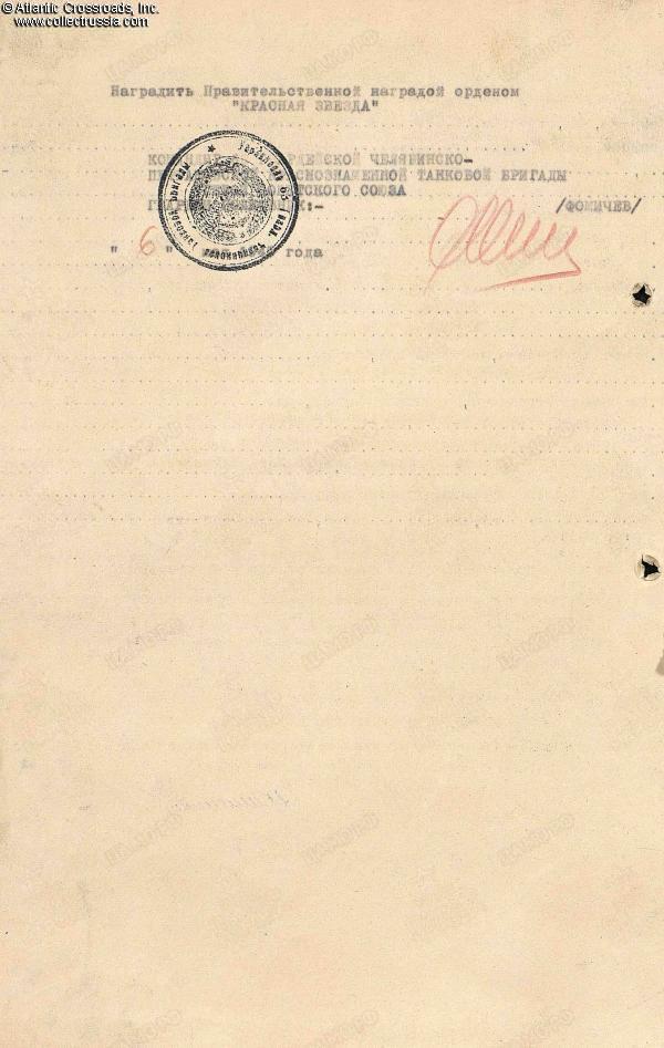 Tsarskiy distinguished himself again during the Battle of Berlin, when Konev's 1st Ukrainian Front was pushing towards the Nazi capital from the south. At the time, he served as the driver of a T-34 tank in the 3rd Tank Battalion, 63rd Guards Tank Brigade, 10th Guards Tank Corps, 4th Tank Army, 1st Ukrainian Front. In fighting for the town of Luckenwalde about 35 miles south of Berlin, he used his tank as an enemy mower, crushing 36 enemy soldiers, five Panzerfaust crews, and two machine gun nests under his tank's tracks. On 13 May 1945, he was awarded with his second Order of the Red Star, his final decoration of WW2.