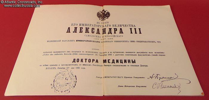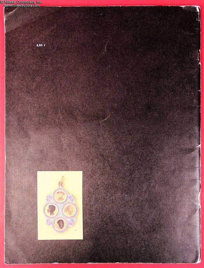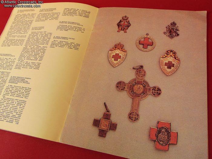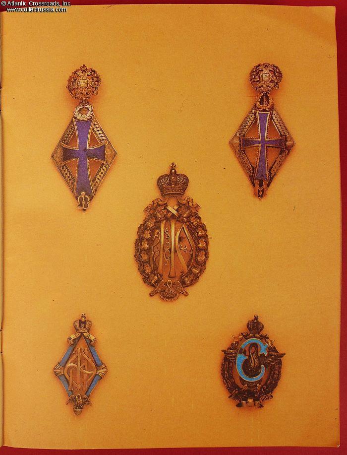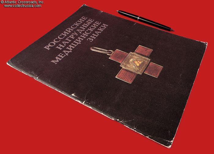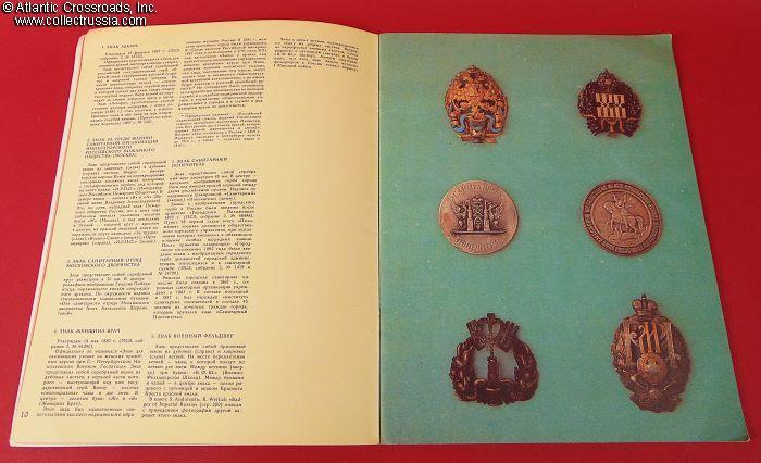 Measures 8 ½" x 11", 48 pp., soft cover, published by Museum of History of Medicine, Riga, circulation 12,500. Contains 112 color photos of Imperial Russian era badges related to professional medicine and healthcare, each captioned with a detailed description and prefaced by an essay on their history.
