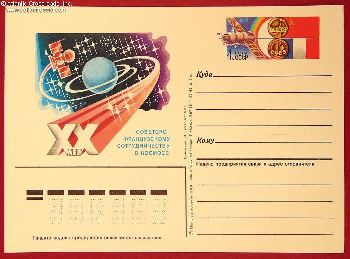 Special-Issue Government Postcard Commemorating the XX Anniversary of Soviet-French Cooperation in Space.