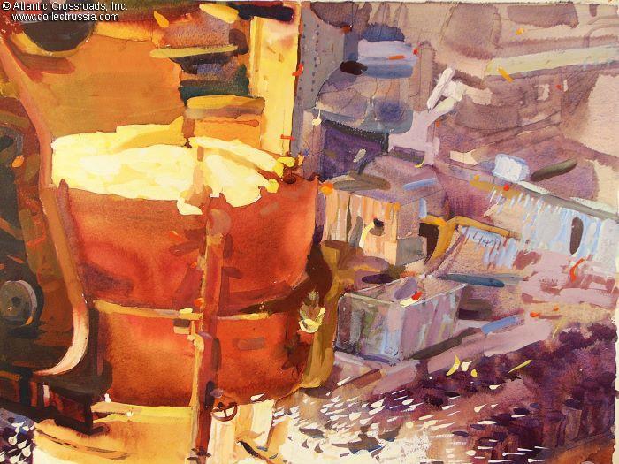 David Ionin (Давид Маркович Ионин, 1916 - 1987), was a distinguished Soviet painter and master of graphic arts, member of the USSR Artists' Union and Chairman of the Sverdlovsk Regional Organization of the USSR Artists' Union. The industrial theme was his favorite, not surprising for a region dominated by metallurgy and heavy machine-building industry. He was awarded with the Order of the Red Banner of Labor and the Order of the Badge of Honor. His works can be found in the art galleries of Yekaterinburg, Perm, Nizhniy Tagil, and in private collections.