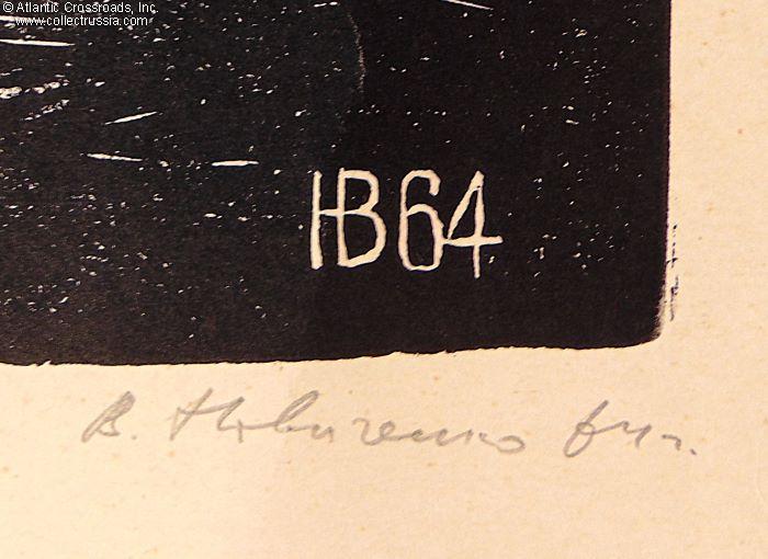 Valentin Novichenko (Валентин Алексеевич Новиченко, 1927-2010) was a well-known master of graphic arts from the Urals. He was born into a working-class family. His childhood impressions of industry and the construction of the Orsk Metallurgical Combine (group of factories) deeply affected his art.