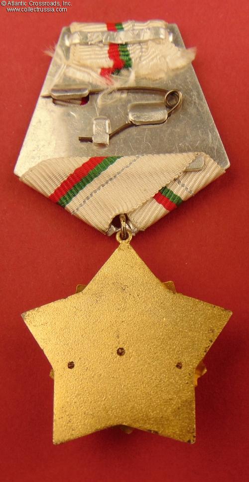 Roughly similar in concept to the contemporary East German Patriotic Order of Merit, this decoration was established on 4 August 1966 and awarded to both Bulgarian nationals and to foreigners who rendered services to the Bulgarian state, including high-ranking Soviet officials. It is one of the more attractive Bulgarian awards of the communist era and also one of the relatively scarce ones.