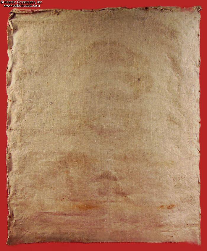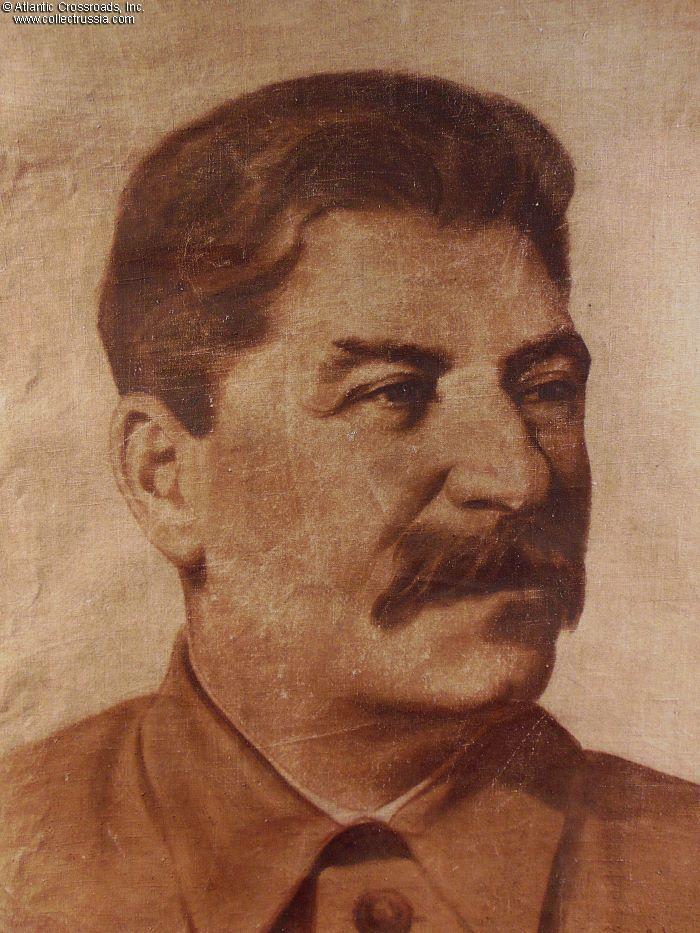 Large size, measures 27" x 34", airbrushed on canvas using sepia-toned gouache. This is one of the state-approved images of Stalin hand-painted by a professional and obviously talented artist.