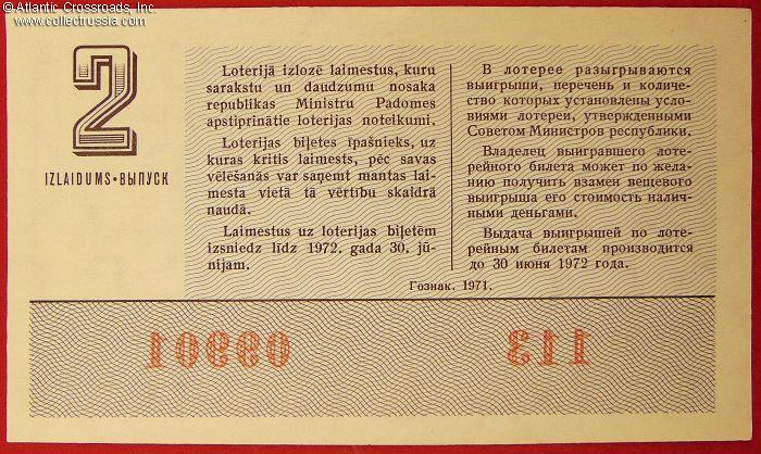 Latvian SSR Lottery Ticket, March 1971 drawing.