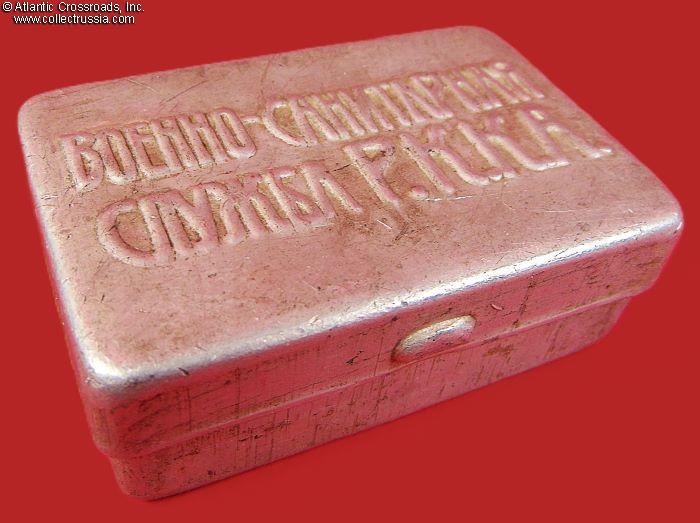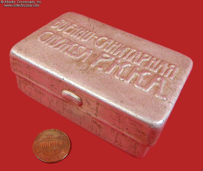 Aluminum Box Marked "Military Medical Service RKKA", circa late 1930s - early 40s. Part of a WW2 Red Army medic's kit.