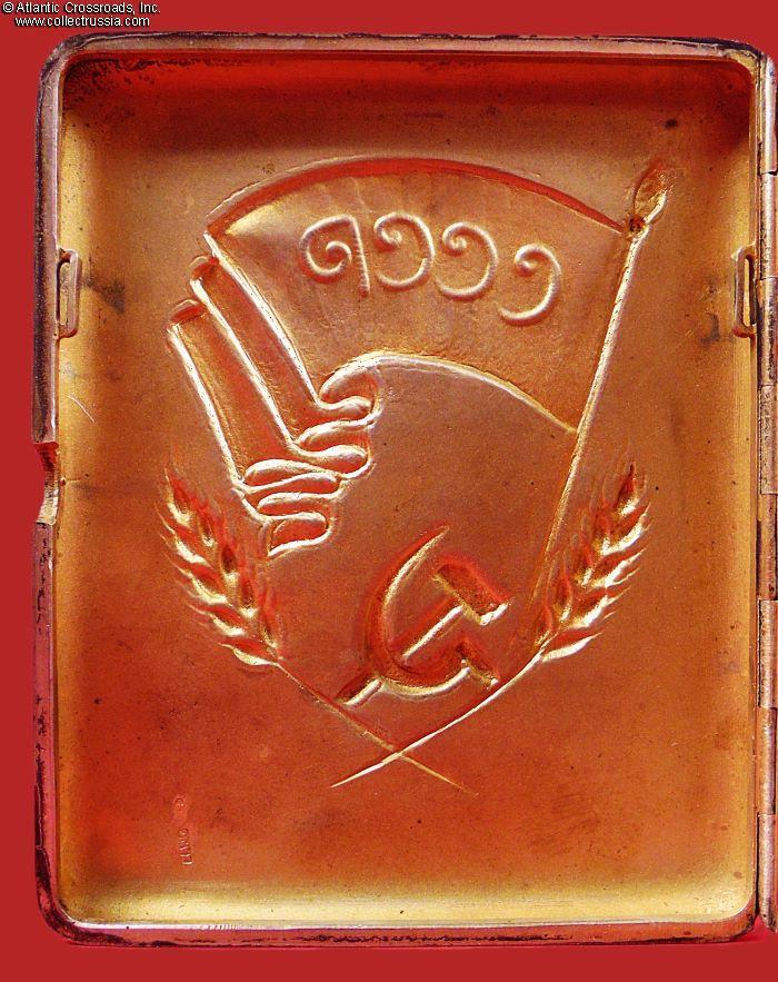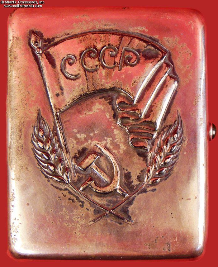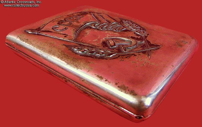 Silver Cigarette Case The Banner of the Soviet State, Maker Marked, circa 1931-32.