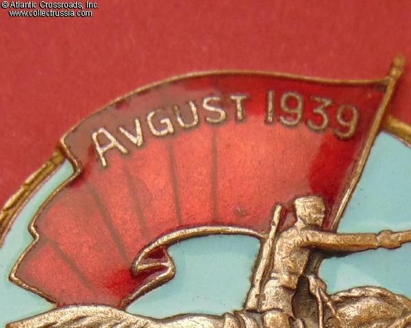 This badge was awarded to participants of the major battle against the Japanese Kwantung Army in Manchuria in the summer of 1939, known in the west as Nomonhan Incident. Although largely obscured by the European events that soon followed- i.e. the German and then, Soviet invasion of Poland - the Battle of Khalkin-Gol is considered by some historians to be the true starting point of the Second World War. Given the importance of the battle, it is not too surprising that the badge was later upgraded in rank by the Mongolian government to be considered a medal. Its flat back version was issued mostly to Mongolian troops and also some of the Soviets who had not received the badge earlier. According to the research by Khuujii, the date of manufacture for all Variation 2 badges is 1946, and only 5504 in total were produced - a small number by the Soviet standards.