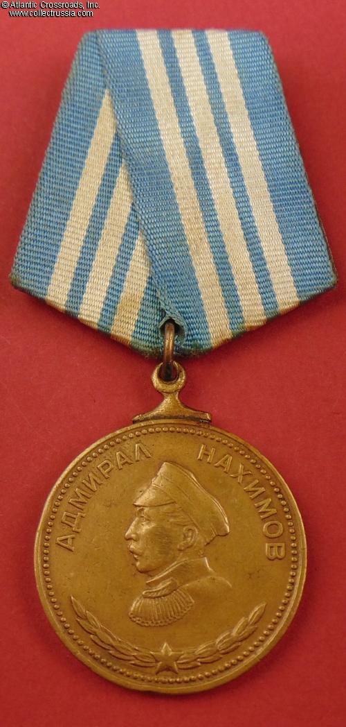 Nakhimov Medal, Variation 1, #1062, awarded on 16 February 1945 to Seaman Aleksandr Biryulin (Александр Михайлович Бирюлин), helmsman of the Submarine M-102 of M class, Series XII, Baltic Fleet.