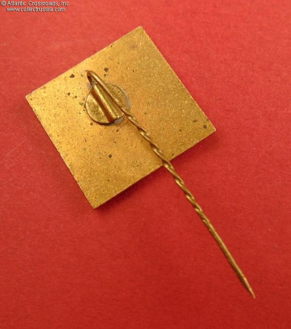 Brass, enamel; measures 19.0 mm in height x 19.7 mm in width. The inscription is in Latvian. Excellent condition.