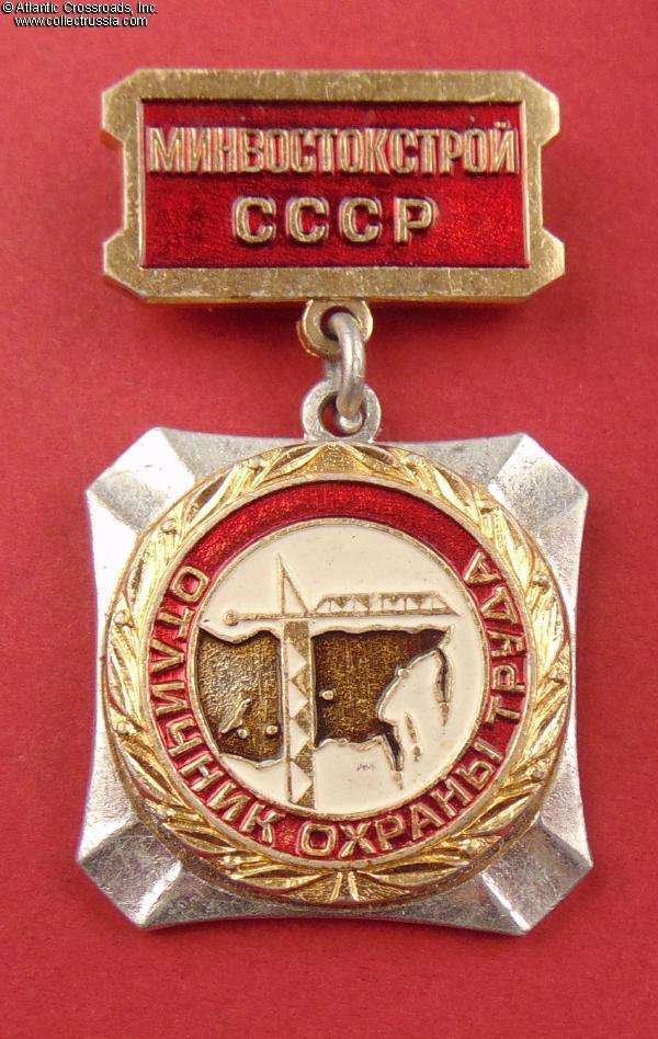 Badge of an Excellent Labor Safety Specialist, Ministry of Far Eastern Construction of the USSR, circa 1970s-80s.