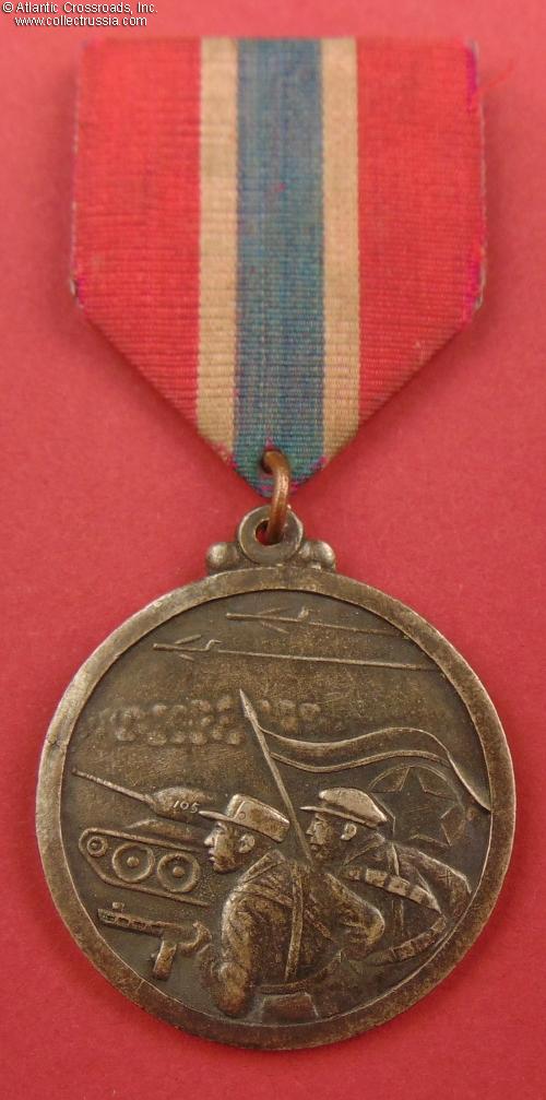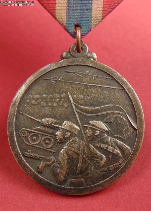 Established in 1953, the medal was awarded during 1954-55. It was issued to partisans, Chinese People's Army "volunteers" who had fought in the Korean War, North Korean combatants who had been honorably discharged from the military prior to the end of the war, and non-combatants who had contributed to the war effort. In general, the medal is fairly common, but it is rare to find in a condition as pristine as the example offered here.
