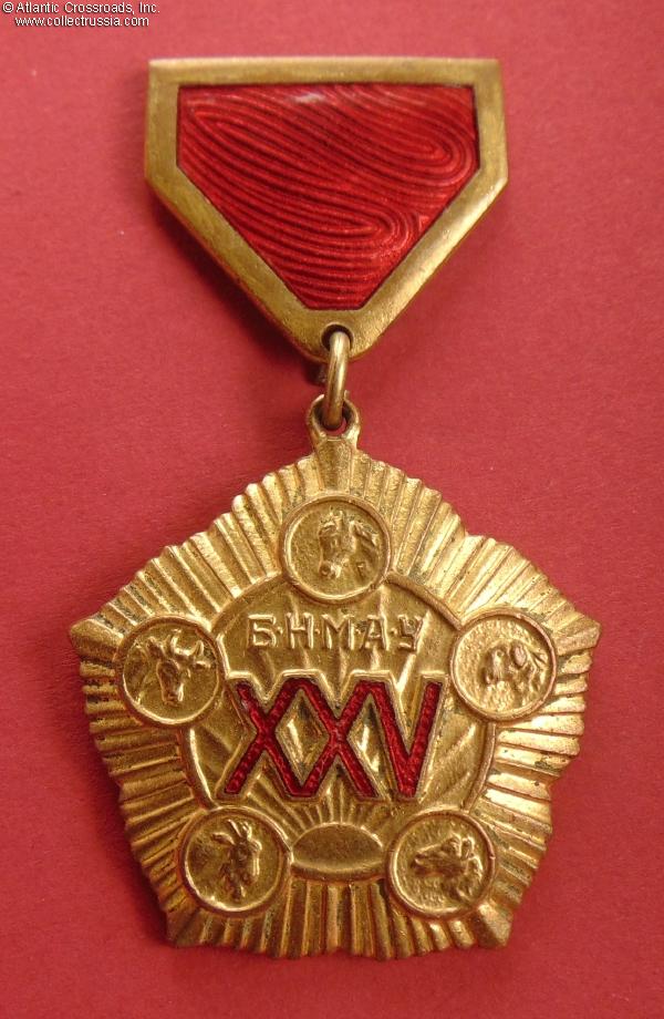 Medal in Commemoration of the 25th Anniversary of the Mongolian People's Republic, Variation 2, #10912, late 1940s.