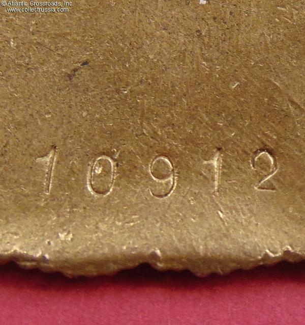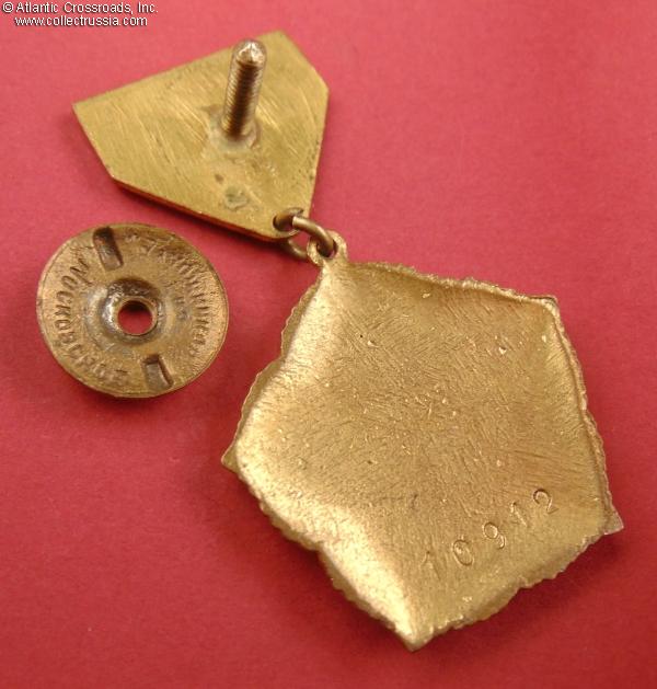 In outstanding, excellent condition. The enamel is perfect on both the numeral and suspension. The gilt on the medallion is extremely well preserved and bright with only an attractive mild patina, no significant tarnish or blemishes. The screw post is full length, well over 12 mm, and includes an original screw plate marked "Moscow Artists Cooperative".