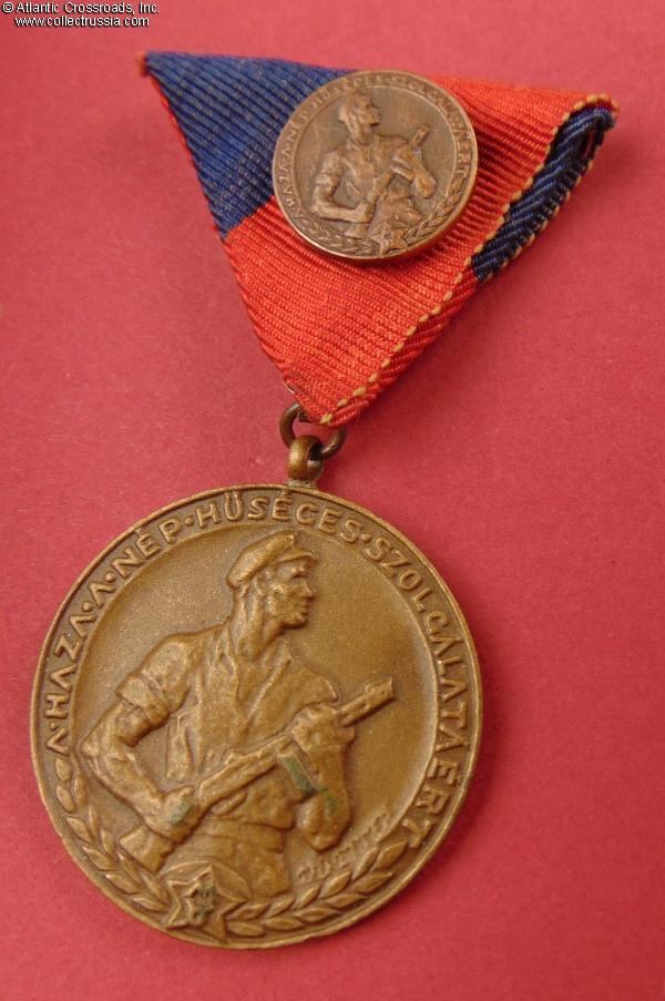 Hungary, Medal for Service in People's Militia, with miniature badge, 1960s issue.