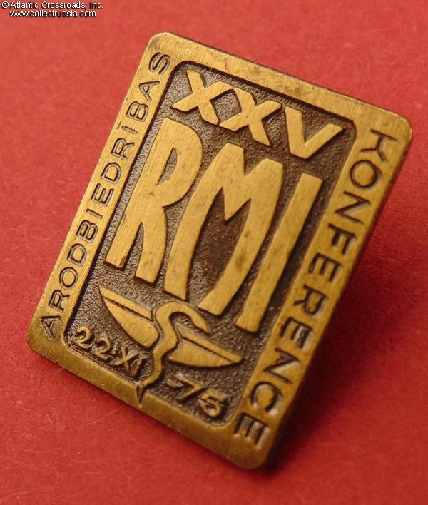 In brass, 22.7 x 18.1 mm. Latvian language inscription includes the RMI acronym of the school. Excellent condition.
