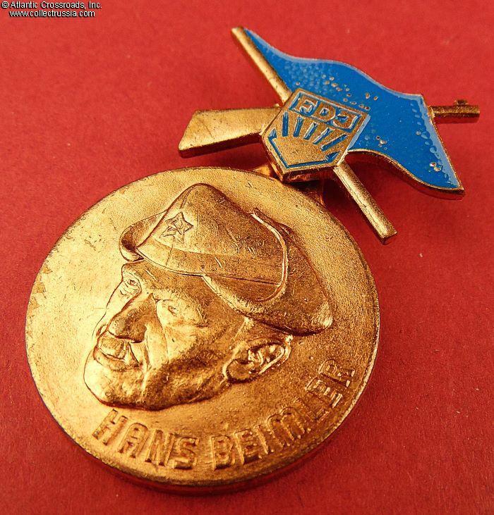 The East German Frei Deutsche Jugend organization (FDJ, equivalent to the Soviet Komsomol), dedicated their paramilitary exercises tournament to Hans Beimler and instituted this medal for the winners of these tournaments.