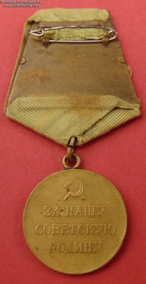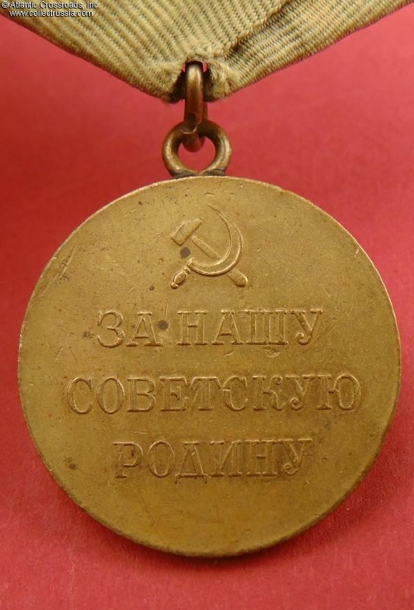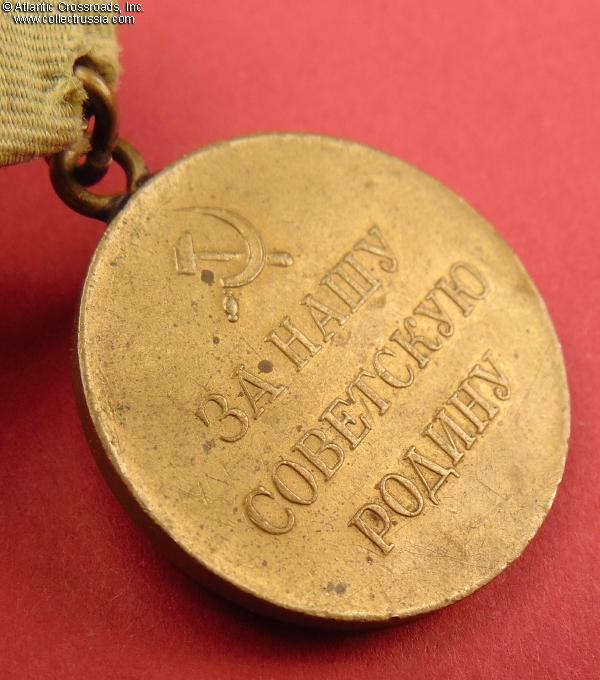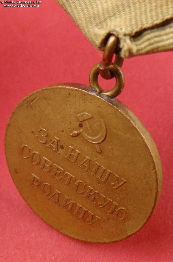 Comes on an original WW2 era suspension, a two-layer model in brass with a self-locking pin. The ribbon is old, likely original to the medal; although faded and showing wear at the edges, it remains clean and sound, adding a tremendous amount of personality to the medal. The connecting link has been cut but appears to be original or at least of the period. Overall, a very attractive example of the Variation 1 Leningrad Medal!