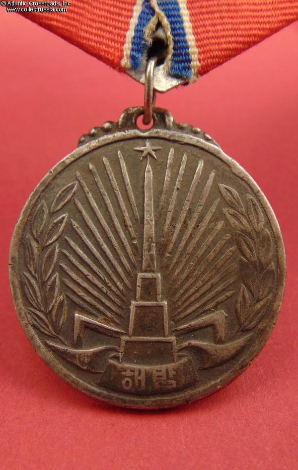 Established in October 1948, this medal was among the first decorations of DPRK. It was awarded to Soviet Army personnel who fought in Korea against the Japanese in the last days of WW2. Soviet servicemen, especially career officers and NCOs who remained on active duty after WW2, often wore the medal on a Soviet-style suspension to keep it in line with their other decorations; it was common in such cases to use any Soviet medal ribbon of similar colors as an ad-hoc replacement because the correct Korean ribbon was nowhere to be found.