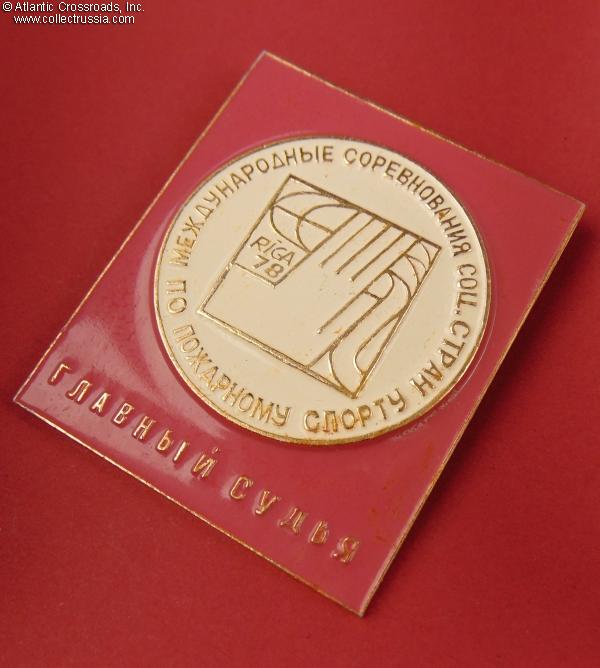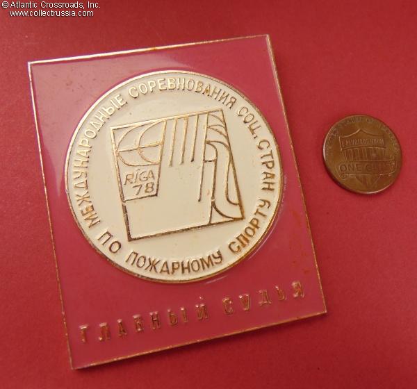 Breast Badge of a Senior Referee at the 1978 International Firefighting Competition of Socialist Countries in Riga, Latvian SSR.