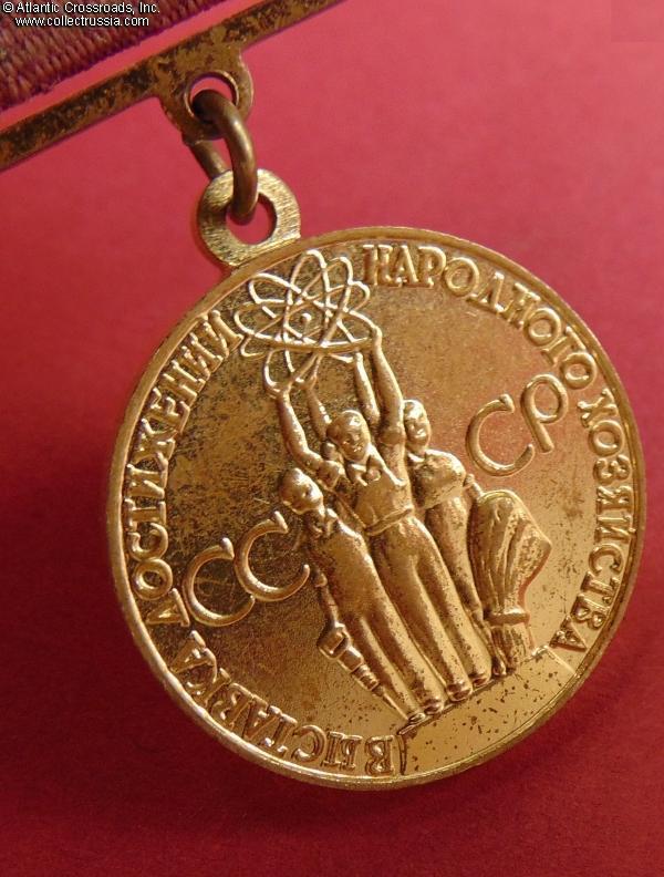 Originally founded in Moscow in the late 1930s as the All-Union Agricultural Exhibition (VSKhV) to be a year-round celebration of the achievements of the USSR, the huge, world fair-like, complex changed its name in 1956 to Exhibition of Achievements of the National Economy when it was decided that its name needed to reflect the broader nature of the exhibits and competitions being held there. Several judged competitions were held on the grounds virtually every week of the year and these medals were given to the winners. The exhibition area still exists today in all of its socialist glory although many former exhibit areas are now occupied by small retail shops.