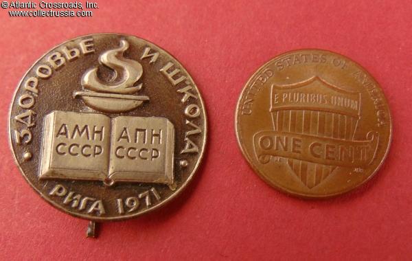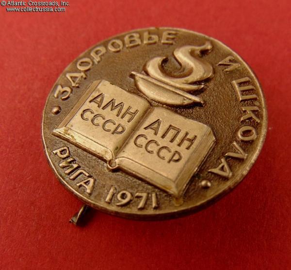 Badge of a Participant of the "Health and School" Joint Conference of the Academies of Medical Science and Pedagogical Science of the USSR, Riga, Latvian SSR, 1971.