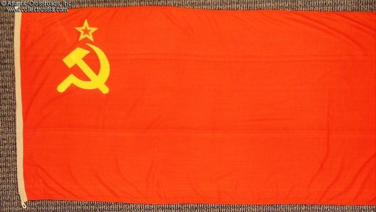 Outstanding, excellent condition. The flag is completely free of the moth damage prevalent among the Soviet-era flags made of wool. There are a couple of small spots but the flag is otherwise perfectly clean and free of significant soiling; its colors are strong; and there are no snags or tears. A truly superb example of a large Soviet merchant fleet flag fit for an ocean-going vessel.