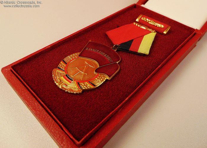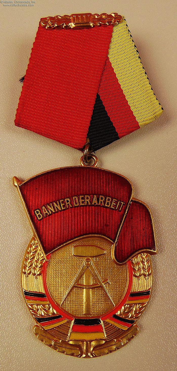 The Banner of Labor (original name "Banner der Arbeit") was instituted on 4 August 1954 in one class. On 8 August 1974, it was divided into three classes. The 1st class was the highest, and each class included a cash award. The order was awarded to individuals and collectives for