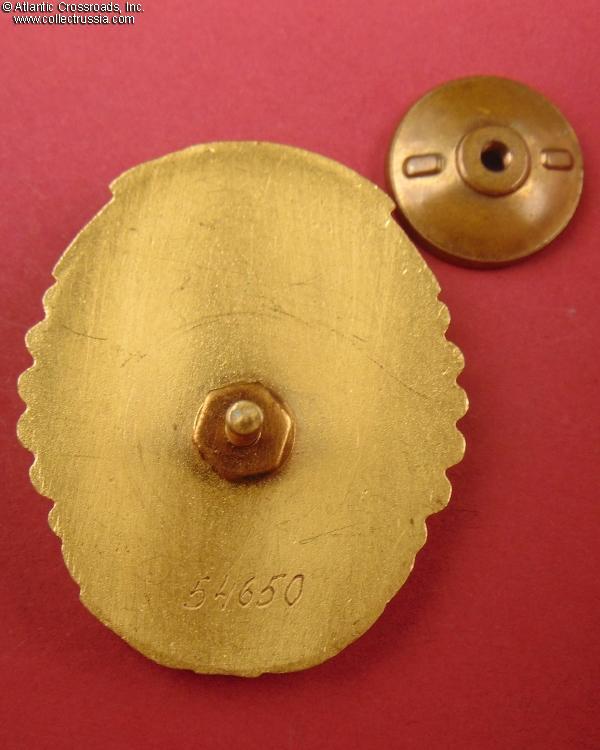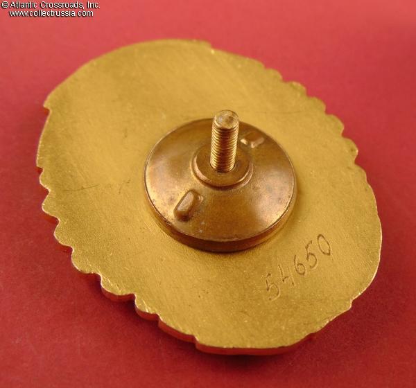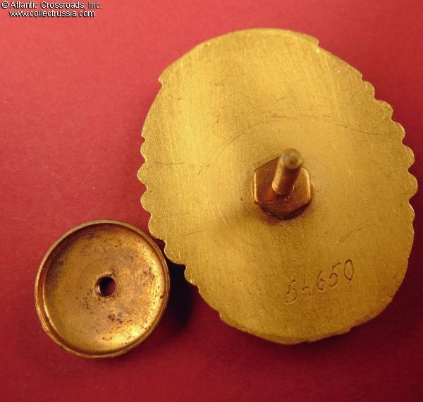 Outstanding, excellent condition. The enamel is flawless and exhibits a magnificent luster. The gilt finish is beautifully preserved and bright, showing only a mild wear on the high points of the bas-relief portrait, which adds character. The screw post is full length, nearly 12.5mm measured from the reverse of the badge, and includes the original washer, hexagon retaining nut and original screw plate.