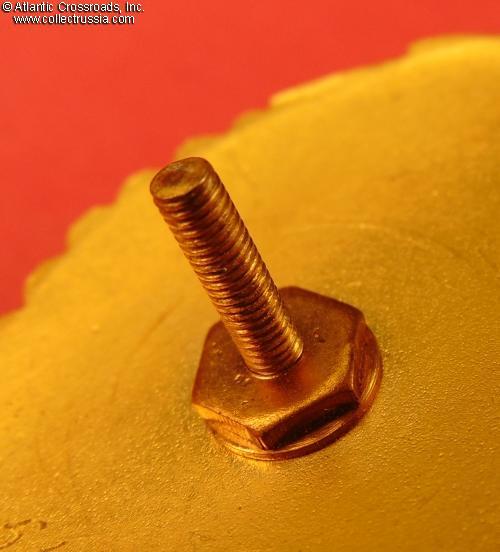 Gilded brass, enamels; 47.3 x 39.5 mm. Second variation, featuring a rotating tool-engraved serial number.