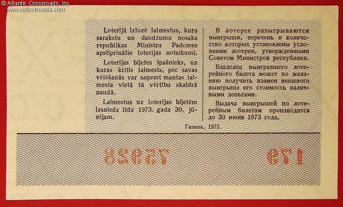 Latvian SSR Lottery Ticket, December 1972 drawing.