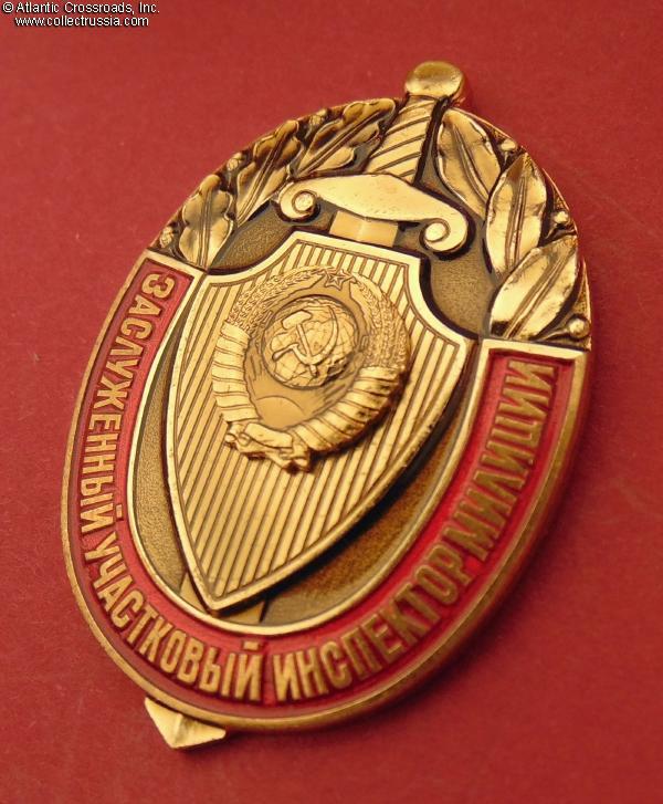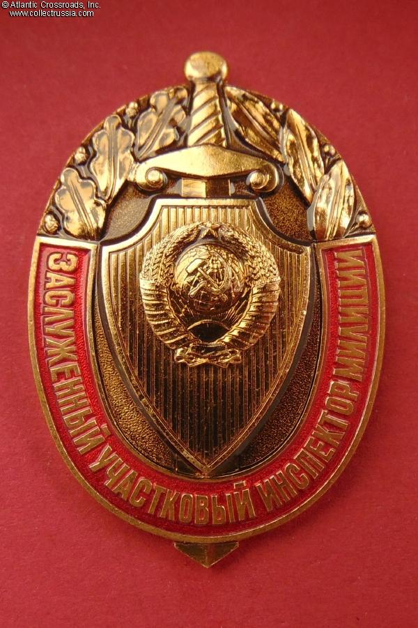 The badge was established in 1987, on the occasion of the 70th anniversary of Soviet Police. It was awarded for outstanding achievements to police inspectors with a minimum of 5 years of service. /See History of Awards and Insignia of Russian MVD, 1802 - 2002 p. 78, fig. 1.2.2.27/