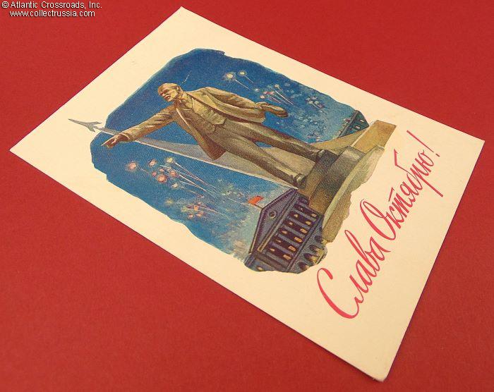 Government Postcard Glory to October, with a mysterious inscription, 1962.