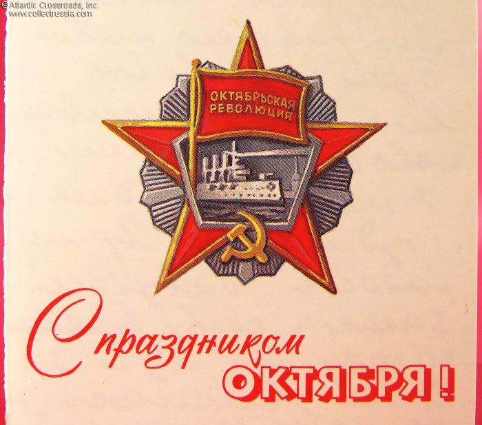 Postcard Happy October with the Order of the October Revolution, inscribed, 1986.