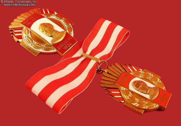 The Order of Ayacucho (Orden Militar de Ayacucho) was established on 30 November 1944 in commemoration of the centennial of the Battle of Ayacucho, which led to establishing Peru's independence from Spain. It is awarded for exceptional merit or distinguished service in positions of command or for long periods, to military, republican guard, and civil guard personnel.