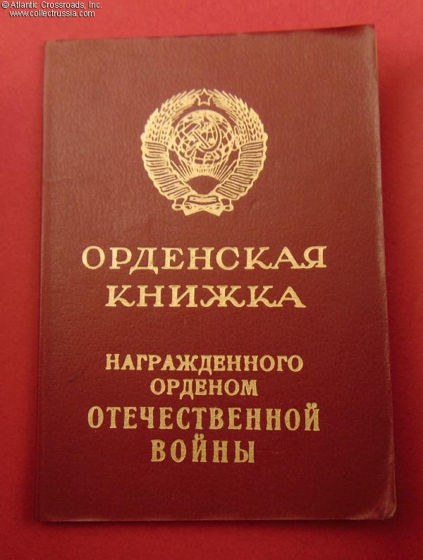 Order Booklet, Series B #055659 is of the special type designed specifically for the Order of the Patriotic War, 2nd cl. of 1985 issue. The document is in excellent condition, showing only a very mild wear to the edges and normal age toning to the interior, no soiling or damage of any kind.