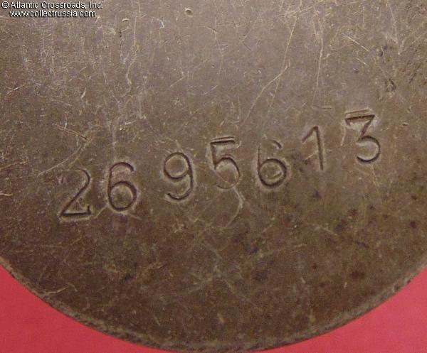 The medal comes on an early post-war suspension, a single-layer model in brass. The ribbon is old but very nicely preserved and sound. The silver connecting link also appears to be original; its ends are still joined with solder in a seamless manner characteristic of the mint production.