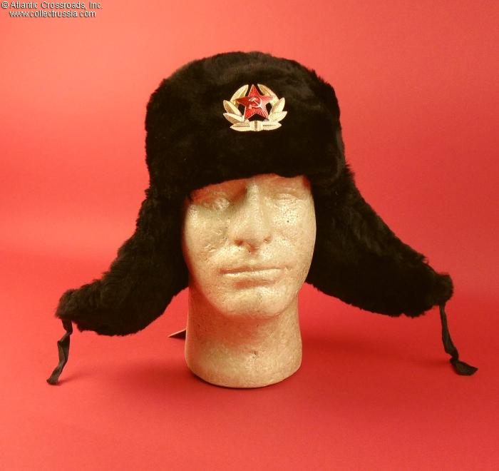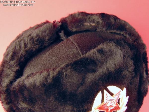 The hat is unissued and shows only a storage age, has never been worn. There are a few very small areas where the fur is missing, one on the edge of one of the ear flaps and two at the brim. This damage, obviously acquired in storage, is so minor that it is hidden by the surrounding fur and will be practically invisible when the hat is worn or displayed. The hat is in otherwise mint condition and perfectly clean. A very uncommon hat to find in premium condition, decent size, and with a Soviet era maker's tag still attached!
