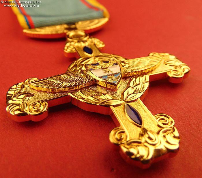 The Aerospace Force Cross of Aeronautical Merit was established in 1948 primarily to be awarded to the Aerospace Force personnel but it can be also awarded to members of the Colombian Armed Forces or National Police, as well as foreign civilian and military personnel in recognition of valor and distinguished service to the Columbian Aerospace Force.