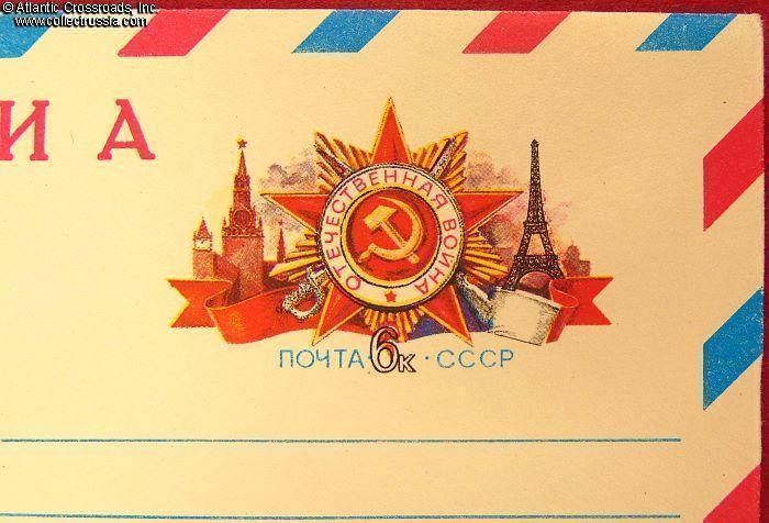 The size is 6 ½" x 4 ½", with a pre-printed postal stamp. Postally unused, published by the Ministry of Communications of the USSR, circulation unknown. The special-issue postal stamp features all the symbols of the Normandie-Nieman Air Force Regiment: the Spasskaya Clock Tower of the Moscow Kremlin, the Eiffel Tower of Paris, and the Order of the Patriotic War. In March of 1942, the Free France National Committee offered the Soviet government to send a group of French pilots and avia mechanics to fight against the Nazi Germany. It was this offer and seventeen French pilots sent to the