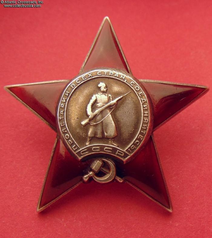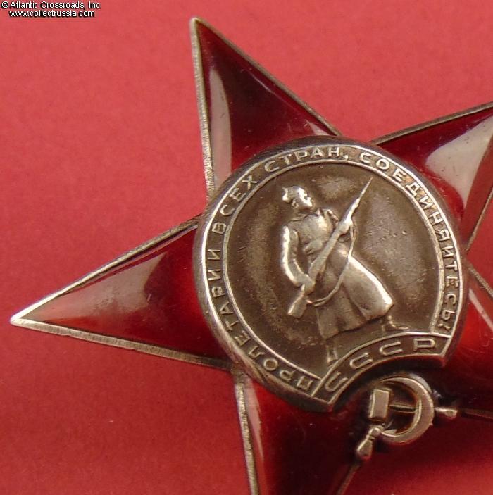 Order of the Red Star, Type 3, Variation 2, Sub-variation 4 (Strekalov classification, aka "Small Mondvor"), #9331, awarded on 11 April 1940 to Senior Lieutenant Sergey Cheremenin (Сергей Георгиевич Череменин), Reconnaissance Company Commander, 147th Rifle Regiment, 43rd Rifle Division, 19th Rifle Corps, 7th Army, for the Winter War against Finland.