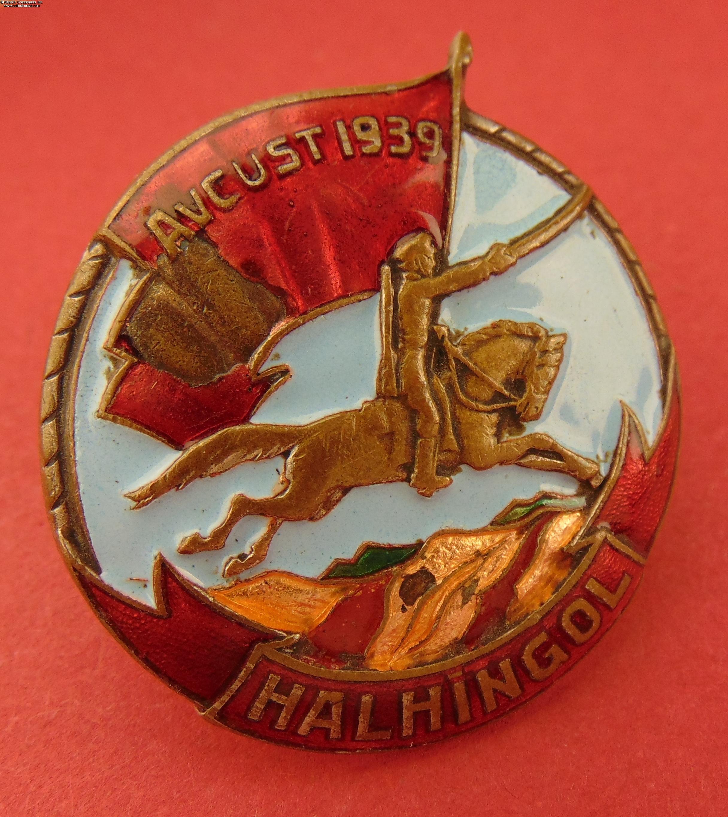 The badge was awarded for participation in the battle against the Japanese Kwantung Army in Manchuria in 1939. The relief reverse variation was manufactured prior to the Patriotic War and issued during 1941 - 1946 period. Among its 3000 recipients most were Soviet veterans of the battle at Khalkhin Gol. Although it was initially called a badge, this is essentially a campaign medal, and was later upgraded in status in Mongolia to be considered just that.