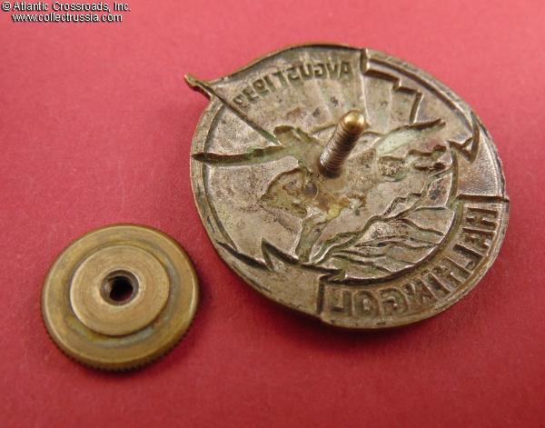 Much of the original silver plating on the reverse is present. The screw post is full length, nearly 11 mm. The screw plate is a replacement. Although far from perfect, this is an overall attractive example of the early version of the Khalkhin Gol Badge.