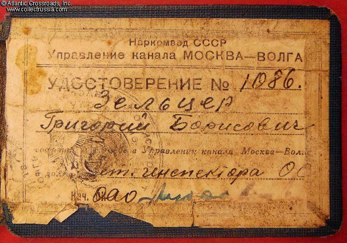 The ID was issued in the city of Dmitrov, Moscow Region, the location of DMITLAG, the central forced labor camp into which prisoners had been funneled to be distributed to various construction sites of Stalin's Moskva-Volga Canal. The Moskva-Volga Canal was one of the most publicized of the Soviet 1930's industrial projects, both in USSR and abroad, and also one of the deadliest, comparable perhaps only to the Belomor (White Sea - Baltic) Canal project which completed in 1932 by a workforce of 160,000 prisoner laborers of whom about 25,000 died during its construction. The workforce on the Moskva-Volga Canal project counted about 200,000 Gulag prisoners at any one time. As the Nazis were approaching Moscow in 1941, all the NKVD records pertaining to the prisoners were evacuated from DMITLAG to Ulyanovsk (Lenin's birthplace) but were ordered to be burned right on the wharf there. Local historians estimate the death toll to be between 700,000 to about 1,500,000. To provide a frame of reference, the construction began in 1932 and finished in 1937. For a detailed literary account see Solzhenitsyn's Gulag Archipelago.